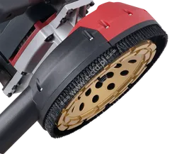 Profesjonalna szlifierka powierzchniowa dedykowana do pracy z materiałami budowlanymi twardymi w oparciu o frezy talerzowe 125mm. Niezwykle wydajna i funkcjonalna, przystosowana do długich cykli roboczych. Wyposażona została w mocną jednostkę o mocy 2200W, płynną regulację obrotów w zakresie od 4500 do 9500 (obr/min). Bardzo ergonomicznych uchwyt zamocowany na gumach antywibracyjnych wspomaga długą pracę przy wiekszych powierzchniach. Urządzenie posiada zabezpieczenie przeciwko wtórnemu startowi w przypadku nagłego odłączenia zasilania efektywnie poprawiając bezpieczeństwo. Mocna jednostka wyposażona w elektroniczne sterowanie zapewnia stały poziom mocy i równe wykończenie. Współpracuje z frezami o średnicy 125mm mocowanymi zarówno na gwint M14 jak i na krążku adaptacyjnym dla frezów z otworem 22.23mm. Osłona przeciwpyłowa ma sprężynowe zawieszenie i umożliwia jeszcze skuteczniejsze blokowanie pyłu wewnątrz osłony. Urządzenie waży 5.75kg a jego waga nie jest odczuwalna dzięki wygodnym pochwytom.