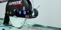 Seria SUPREME jest dowodem na to, że na bazie koncepcji klasycznej przecinarki mostowej i bardzo mobilnej można obsadzić mocniejszą jednostkę, łącząc cechy dwóch różnych klas sprzętowych. Otwiera ona rozdział mobilnych przecinarek zdolnych do pracy typowo przemysłowej z płytami wielkoformatowymi. Niesamowity wkład pracy na desce kreślarskiej, najwyższy poziom wykonania a wszystkie elementy spasowane ręcznie. Owocem pracy fantastycznego zespołu specjalistów jest seria narzędzi wyznaczających nowy poziom. Fenomenalny design łączący się z niepowtarzalną funkcjonalnością i ogromną mocą. Narzędzie do pracy, które przestaje być tylko narzędziem, poruszy wyobraźnię najbardziej wymagających użytkowników. Każdy detal ma swoje znaczenie a całość pozbawiona jest jakichkolwiek wątpliwej użyteczności dodatków. Zastosowane materiały oraz mechanizmy definiują nowe oblicze jakości. Przecinarka precyzyjnie przetnie gruby strukturalny gres i kamienne płyty do 85mm grubości w jednym cyklu lub 135mm w dwóch. Szereg opatentowanych rozwiązań wprowadzi do warsztatu użytkownika duży komfort pracy. Mocna jednostka TT power INFINITY o podwyższonej charakterystyce pozytywnie zaskoczy każdego sceptyka. Seria SUPREME dedykowana jest dla bardzo wymagających użytkowników, którzy od przecinarki oczekują stale wydajnej pracy pod obciążeniem. Dodatkowo wyposażona w mechanizm dwukierunkowego suwu jednostki za pomocą stalowej linki obsługiwanej kołowrotkiem. Dodatek ten pozwala na komfortowe, płynne i bezpieczne cięcie długich elementów. Wersja z oznaczeniem "S" wyposażona została w traser laserowy oraz mocne koła transportowe.
