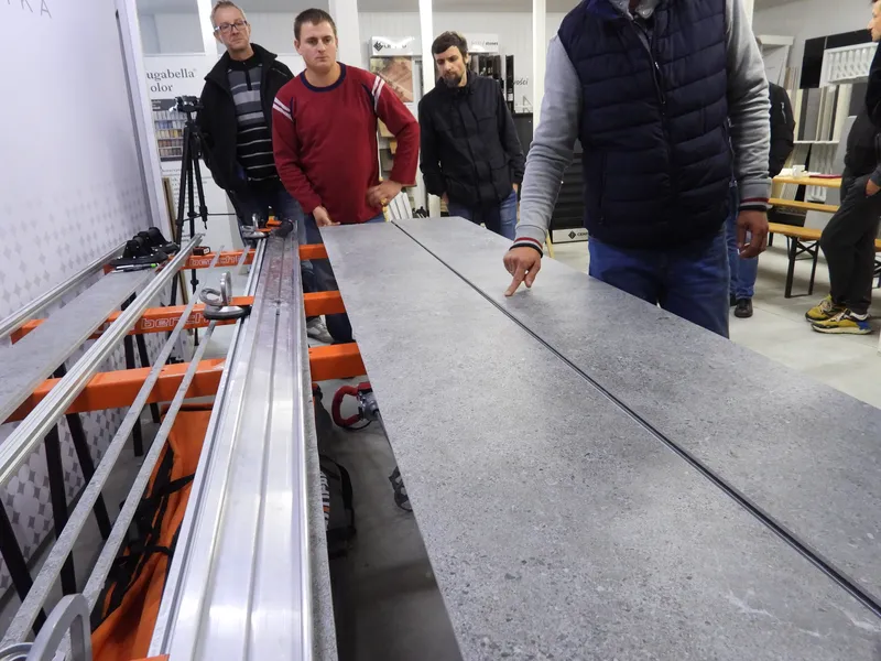 Centralnym punktem spotkania była prezentacja nowoczesnych narzędzi marki BATTIPAV, specjalnie zaprojektowanych do efektywnej pracy z płytami wielkoformatowymi. Narzędzia te zdobyły uznanie uczestników, zarówno pod względem innowacyjności, jak i wydajności w praktyce. Warsztaty praktyczne z wykorzystaniem narzędzi BATTIPAV przyczyniły się do zbudowania pierwszych pozytywnych wrażeń i zaufania do tej marki w kontekście pracy z dużymi formatami płyt.